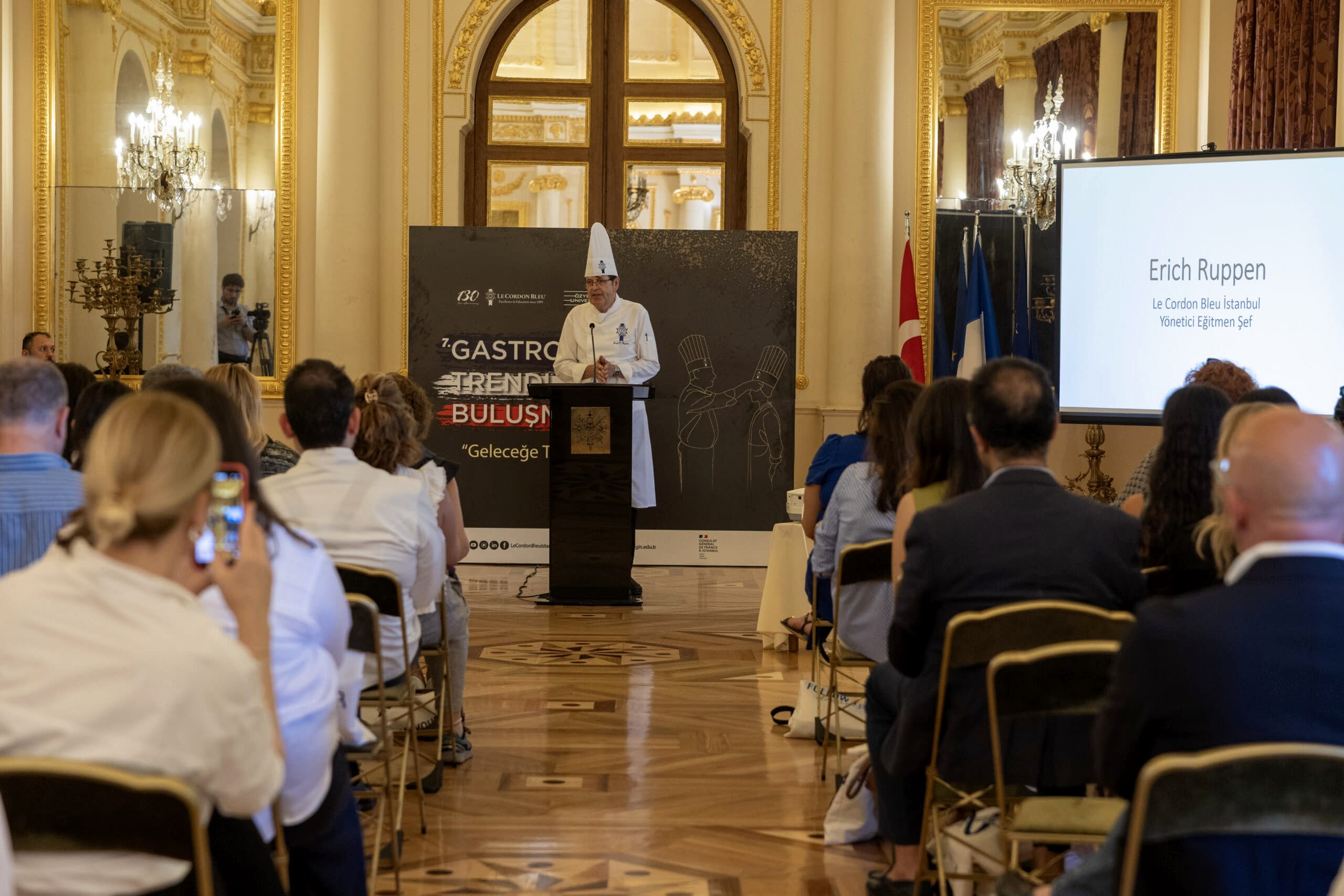 Fransız Sarayı’ndaki buluşmaya, Le Cordon Bleu’den mezun olan ünlü şefler, sektörün kanaat önderleri ve basın mensupları katıldı. Katılımcılar, bu yılın teması olan “Geleceğe Taşıyanlar” ışığında, 2025 Gastronomi Trendleri üzerine bilgi ve görüşlerini paylaştılar.